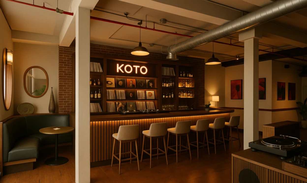 Koto’s space is crafted around presence. Wooden interiors, soft light, and wabi-sabi design create a setting where every detail feels deliberate. Step inside, and the city fades into a hush. Here, music is not background noise—it’s the heartbeat.